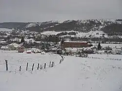There are vast deposits of limestone in the hills. Limestone is being mined and slaked here.