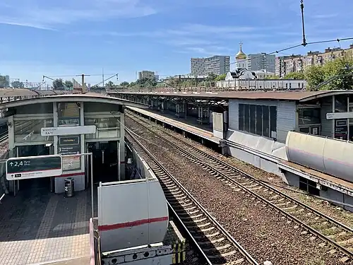 Losinoostrovskaya (Russian: Лосиноостровская) is a railway station located in Losinoostrovsky District of Moscow, Russia. The station serves suburban traffic of Yaroslavsky suburban railway line by Moscow Railway. The southbound trains terminate at Moscow Yaroslavsky railway station in Moscow. The northbound trains terminate at the stations of Bolshevo, Fryazino Passazhirskaya, Monino, Shchyolkovo, Fryazevo, Pushkino, Sofrino, Krasnoarmeysk, Sergiyev Posad, Alexandrov I, and Balakirevo. All suburban trains stop at Losinoostrovskaya.[1] The station is operated by the Moscow Railway.