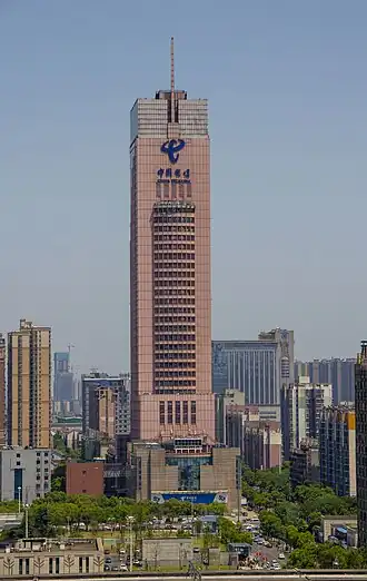 The Lotus Garden China Telecom Building (荷花园电信大楼), also known as the Changsha No. 2 Telecom Hinge Building (长沙第二长途电信枢纽大楼), is a 218-metre-tall (715 ft) commercial building owned by China Telecom in Furong District, Changsha, China. The roof of the building rises to 189 metres (620 ft),[1] with the remaining height being from a spire. Construction began in 1997,[1] and the building was completed in 2000, near a major ring road.[2] At the time of its completion, the building was the tallest high-rise in Changsha.[3]
