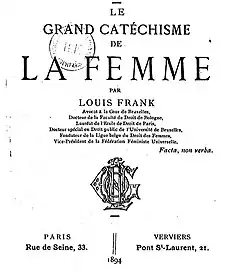 - ^ a b c d e "Louis Frank, pionnier du mouvement féministe belge". JBH - BTNG - RBHC (in Dutch). 2012-05-04. Retrieved 2023-12-07.