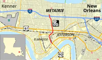 Louisiana Highway 3152 (LA 3152) is a state highway in Louisiana that serves Jefferson Parish. LA 3152 spans 3.8 miles (6.1 km) in a south to north direction[1] and is known locally as South Clearview Parkway and Clearview Parkway.