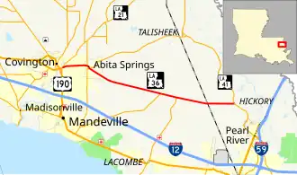 Abita Springs | 2.6 | 4.2 | ![]() | West end of LA 59 overlap | |