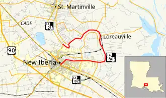La 86—From a junction with La-US 90 at or near New Iberia through or near Morbihan and Loreauville to a junction with La 31 near New Iberia.