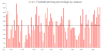 Unlike many in-state rivalries that have been played continuously for many decades, these two schools went through a long period from the 1930s to the 1980s of rarely facing one another. They did play frequently from the 1900s to the 1920s. Since the renewal of the men's basketball rivalry in 1983–84 UK leads the modern rivalry 28–13 and the all-time series 37–16. Since the two teams resumed playing football in 1994, Louisville leads the modern series 15–11 but the all-time series is led by UK at 17–15.