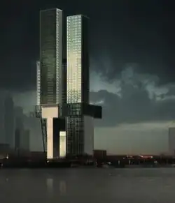 The location of the proposed skyscraper was chosen for its derelict structures; it was donated by the city to the developers.
