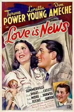 Love Is News is a 1937 American romantic comedy film starring Tyrone Power, Loretta Young, and Don Ameche. The movie was directed by Tay Garnett and was the first film for which Power had top billing. The picture was remade in 1947 as That Wonderful Urge, with Power again and Gene Tierney.
