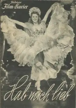 Love Me or Make Love to Me (German: Hab mich lieb) is a 1942 German musical comedy film directed by Harald Braun and starring Marika Rökk, Viktor Staal and Hans Brausewetter.[1] It was shot at the Tempelhof Studios in Berlin. The films sets were designed by the art director Ernst H. Albrecht. The film is a backstage musical and was a major commercial success on its release.
