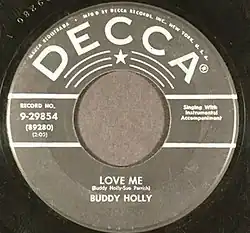 - ^ "Buddy Holly - Love Me". 45cat.com. Retrieved 28 April 2021.