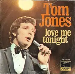 "Love Me Tonight" is a song performed by Tom Jones. It peaked at #2 on the adult contemporary chart, #9 on the UK Singles Chart, and #13 on the Billboard Hot 100 the week of July 19, 1969.[1][2]