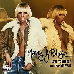 "Love Yourself" is a song recorded by American singer Mary J. Blige featuring rapper Kanye West. It was written by Blige, West, Charles Hinshaw, David D. Brown, Darhyl "DJ" Camper, Jr. for her thirteenth studio album, Strength of a Woman (2017), while production was helmed by the latter. The song contains samples from "Nobody Knows" (1970) by The SCLC Operation Breadbasket Orchestra And Choir. Due to the inclusion of the sample, I. Andrews is also credited as a songwriter. "Love Yourself" released on March 30, 2017, as the third single from Strength of a Woman.
