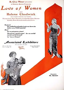 Love of Women is a 1924 American silent drama film directed by Whitman Bennett and starring Helene Chadwick, Montagu Love, and Maurice Costello.[1]