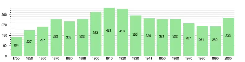 Loveresse has a population (as of December 2020) of 349.[8] As of 2010, 6.3% of the population are resident foreign nationals. Over the last 10 years (2001-2011) the population has changed at a rate of -0.3%. Migration accounted for -0.9%, while births and deaths accounted for 0%.[9]
