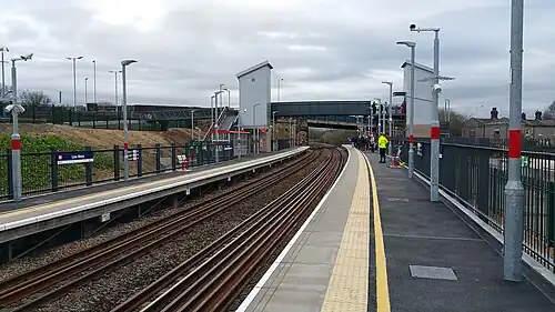 Opening was delayed to summer 2016,[14] and then to May 2017.[15] This date was revised again, and the station opened to passenger trains on Sunday, 2 April 2017.[2] The total cost of the project was £10.8 million.