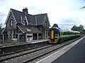 The buildings originally comprised a combined station building and station master's house, a weighbridge hut at the entrance to the goods yard, a goods shed, and stables for the horses that drew the drays to deliver goods. A waiting room, a porter's room and a lamp hut were on the opposite platform from the station building, and a signal box across the road on that side, next to the level crossing. The signal box was opened on 14 June 1896.[4] This Midland Railway Type 2b box was the oldest on the line when abolished in 2016.[5]
