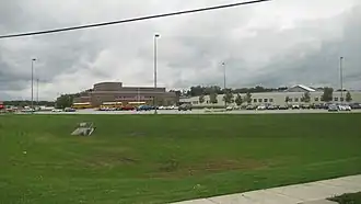 A notable rivalry has existed primarily between the football teams from Crown Point High School and Lowell High School since approximately 1903.[3] Each team competes for "The Old Leather Helmet Trophy",[4][5] a piece of World War I era leather headgear that is mounted to a wooden platform.[6] This trophy symbolizes the long history of the schools' rivalry on the football field, though the rivalry extends into other athletic arenas.[7] Crown Point High School and Lowell High School are not in the same athletic conference,[8] they choose to compete once during the football season to continue the long competitive history.