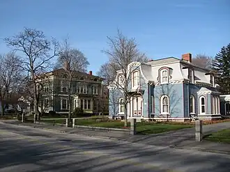 The Lower Union Street Historic District is a historic district on Union St. from Water St. to Market St. in Rockland, Massachusetts. It is a predominantly residential area, encompassing an area of well-preserved houses from the late 18th to early 20th centuries. The oldest houses are those of David Lane (64 Union Street) and Deacon Reed (132 Union Street), built in 1816 and c. 1818 respectively. The Reed house is distinctive because of its brick end walls and its excellent example of a Federal style door surround, with sidelight windows and an elliptical fanlight.[2]