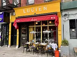 Lucien is a French restaurant located on First Avenue in the East Village neighborhood of Manhattan in New York City. Lucien was opened by Moroccan-born restaurateur Lucien Bahaj in 1998.[1] The menu includes traditional French fare inspired by Bahaj's upbringing in the South of France.[2]