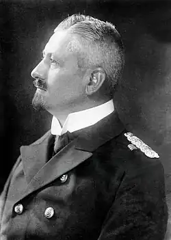 Reuter was born in Guben into a Prussian military family. His father, a colonel in the army, was killed in the Franco-Prussian War. His mother was an unacknowledged illegitimate daughter of Ernst II of Saxe-Coburg and Gotha, making Reuter a second cousin to George V.[1] In 1885, he became a cadet in the Imperial German Navy at the instigation of his mother. As a midshipman at the age of 17, he was promoted to Unterleutnant zur See in 1888. By 1910, he was a Kapitän zur See, commanding the armored cruiser SMS Yorck.[2]