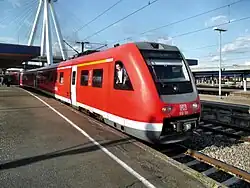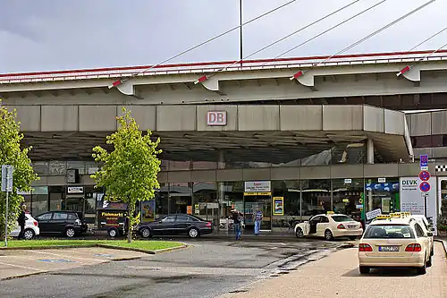 Ludwigshafen (Rhein) Hauptbahnhof is a railway station at Ludwigshafen am Rhein in the German state of Rhineland-Palatinate. A combination of a wedge-shaped station and a two-level interchange, the station is at the junction on the lines from Mainz and Neustadt an der Weinstrasse to Mannheim. It is classified by Deutsche Bahn as a category 2 station.[1] The Ludwigshafen station was built in 1847 as a terminal station in the centre of modern Ludwigshafen. The current station was built in 1969 to the west of the city centre, but has not proved to be a success due to its poor location