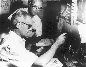Leloir was known for his humility, focus and consistency, described by many as a "true monk in science".[8] Every morning his wife Amelia would drive him in their Fiat 600 and drop him off at 1719 Julián Alvarez Street, location of Fundación Instituto Campomar, with Leloir wearing the same worn out, gray overalls. He worked sitting on the same straw seat for decades and encouraged colleagues to eat lunch in the laboratory to save time, bringing enough meat stew to share with everyone.[8] Indeed, despite Leloir's frugality and extreme dedication to his research, he was a sociable man, claiming not to like working alone.[12]