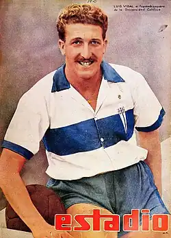 At the age of 10, Vidal played for Colegio San Agustín. A year later, he joined Unión Deportiva Española youth system. He was promoted to the first team in 1933 and made his professional debut in 1936. In 1939, he switched to Universidad Católica, winning the 1949 Primera División, despite the fact that he was injured.[1] In both Unión Española and Universidad Católica, he coincided with Fernando Riera, whom he nicknamed Tata (In Chile, an informal form for Grandfather).[2]