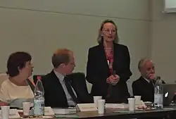 Since 1977, Dr. Druke has headed offices and missions of the UNHCR (United Nations High Commissioner for Refugees) in Europe, South East Asia and Central Asia, Latin America, and Africa, including the Namibian Operation as part of UNTAG, the country operation in Honduras[3][4] with refugees from El Salvador, Nicaragua[5] and Guatemala in the midst of armed conflicts during the late 1980s,[6] and the operations in Kazakhstan/Central Asia. While UNHCR representative in Bulgaria[7][8][9] she frequently acted as the UN Resident Coordinator from 2000–2005, as well as the Humanitarian Coordinator in the NATO Cooperative Key operations (2001, 2003, and initially in 2005) with 20,000 refugees in the midst of an air conflict between warring parties inside of Bulgaria.[10] During and after her work for the United Nations Dr. Druke lectured at the Faculty of Law and the European Institute and the University of Nice, at Boston University in the graduate program in International Relations in Brussels and presented seminars and round tables at the Harvard Kennedy School as well as at the MIT Center for International Studies where she served as a visiting scholar. She also has been teaching semester courses at the Leibniz University Hannover,[11] at Suffolk University[12] and at Harvard University[13] in UN and EU related topics.[14]