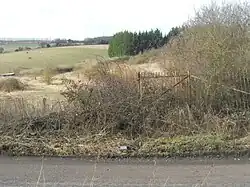 As a result of the war and the failure of the airport to materialise, Lullingstone station was never brought into use and gradually became derelict.[11][18][19] The introduction of the post-war Green Belt Act put a halt to any potential residential development and the incomplete station, standing in the middle of fields, was useless.[20][2][17] It was mostly dismantled in 1955, leaving only the concrete supports for the platforms.[21][17] The station canopy was removed and re-erected in 1960 at Canterbury East.[20]