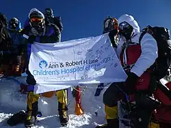 In 2019, Chicago native Alex Pancoe started a fundraiser where he committed to climb Mount Everest to raise funds for the hospital with a goal to raise $1 million.[65] Pancoe was previously treated at Lurie Children's Hospital for a brain tumor when he was in college.[66]