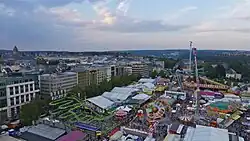 The Stade de Luxembourg, situated in Gasperich, southern Luxembourg City, is the country's national stadium and largest sports venue in the country with a capacity of 9,386 for sporting events, including football and rugby union, and 15,000 for concerts.[29] The largest indoor venue in the country is d'Coque, Kirchberg, north-eastern Luxembourg City, which has a capacity of 8,300. The arena is used for basketball, handball, gymnastics, and volleyball, including the final of the 2007 Women's European Volleyball Championship. D'Coque also includes an Olympic-size swimming pool.[30]