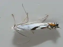 Lyonetiidae is a family of moths with around 200 described species.[1] These are small, slender moths, the wingspan rarely exceeding 1 cm. The very narrow forewings, held folded backwards covering the hindwings and abdomen, often have pointed apices noticeably up- or down-turned. The larvae are leaf miners.