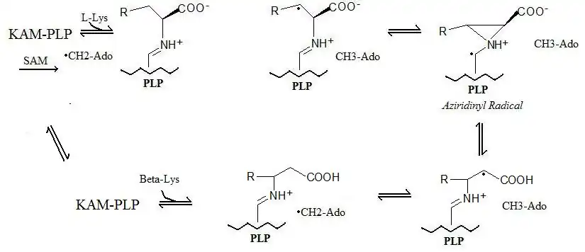 - ^ Frey PA (May 1993). "Lysine 2,3-aminomutase: is adenosylmethionine a poor man's adenosylcobalamin?". FASEB Journal. 7 (8): 662–70. doi:10.1096/fasebj.7.8.8500691. PMID 8500691. S2CID 33374466.