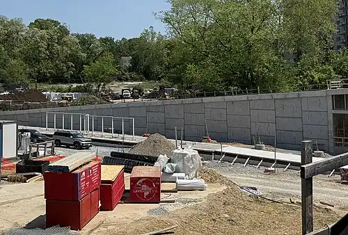 Lyttonsville station is an under-construction light rail station in the Lyttonsville neighborhood of Silver Spring, Maryland, that will be served by the Purple Line. The station will have an island platform just north of the Lyttonsville Place overpass.[1] It will feature steel girders from the historic Talbot Avenue bridge.[2] As of 2023, the Purple Line is planned to open in 2027.[3]
