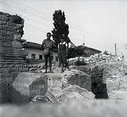 Between 1958 and 1963, the work led by Ognenova at the Nesebar site uncovered many significant monuments, including the Temple of Zeus Hiperdeksios, the Botros Temple of Zeus and Hera and others.[6] She also was noted for her epigraphic work with Greek and Latin texts found in Bulgaria.[4] Her study on inscription of the ring found in Ezerovo, and an Illyrian inscription found on a ring from Koman, Albania, allowed Ognenova to conclude that the Illyrian text, despite previous conjectures of its meaninglessness was significant. Tracing the origin of the ring and its shape, she was able to date the ring to the 8th century. Presenting a paper on her findings in Lidice, Czechoslovakia, she caused a sensation and was invited to study from 1959 to 1960 at the École Française d'Athène, one of the archaeological institutes operated by foreign governments in Athens.[7][8]