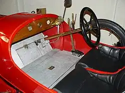 The first cars were 4.5 hp (3.4 kW) 2-cylinder models with chain drive. In 1900, the company switched to shaft drive.[1] In 1905 an all-new range was introduced, resembling contemporary Daimlers, both designed by Ernst Lehmann, who come to Métallurgique from there in 1903.[2] These cars, with pressed-steel chassis, live rear axle, shaft drive,[3] high-tension ignition,[4] and the option of dynamo-powered[5] electric lighting, were to establish the company as one of the finest makers of sporting cars in Europe. Production was targeted for export, and most sales were in Britain.[6] In 1906, there came the 4-cylinder inlet over exhaust 10 L (610 cu in), with a claimed output of 100 bhp (75 kW) at 1400 rpm, enabling the car to reach 160 km/h (99 mph).[7] The cars got a distinctive V front radiator in 1907.[8]