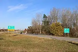 Just after entering Westland, an overpass carries M-153 over a railroad track, flanked on either side by an at-grade frontage road.[4] Ford Road continues east, forming a section of the Garden City boundary near Venoy Road. The trunkline crosses into Dearborn Heights at Inkster Road. It forms the boundary between Dearborn and Dearborn Heights between Gulley and Evergreen roads, crossing US 24 (Telegraph Road) in between. East of Telegraph Road, M-153 is built to expressway standards complete with interchanges at Edward N. Hines Drive, Evergreen Road, M-39 (Southfield Freeway) and Greenfield Road. The highway crosses the River Rouge north of the Dearborn Country Club west of Evergreen Road. Ford Road ends at Wyoming and McGraw avenues. M-153 turns south along Wyoming Avenue to cross I-94 at exit 210. This interchange is also the location where I-94 and US 12 (Michigan Avenue) cross, marking the eastern end of M-153 at Michigan Avenue.[3][4]