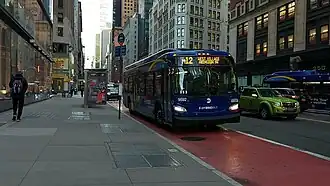 The M12 operates out of Michael J. Quill Depot, using NovaBus LFS HEV, New Flyer XE40s, and New Flyer XD40 Xcelsior buses.[7][8] Prior to 2019, the route operated Nova Bus RTS-06 buses, but these were replaced by the XD40s.[9][10]