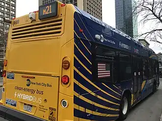 ![]() A 2021 Nova Bus LFS HEV (9689) on the M21 in SoHo, Manhattan | |||