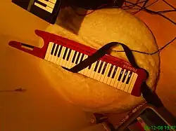 Keyboards are by far the most common type of MIDI controller[8] and are available in various sizes, ordinarily from 25 to 88 keys.[9] When a key is played, the MIDI controller sends MIDI data describing the pitch of the note and its duration—most MIDI keyboards also send data about the velocity with which a key is pressed. MIDI keyboards normally include pitch wheels, modulation wheels, and sockets for pedals (especially sustain pedals), as well as controls that transpose the pitch values of notes played by the performer between octaves.