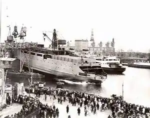 Saint Germain was built by Helsingør Skibs og Maskinbyggeri, Helsingør, Denmark for SNCF.[1] Her port of registry was Dunkerque and she was allocated the Call sign FNXF. She had a capacity of 36 sleeping cars and two PMVs or 36 railway wagons or 160 motor cars. As built, she had capacity for 850 passengers.[2] Saint Germain arrived at Dunkerque on 25 July 1951 and entered service three days later on the Dunkerque - Dover route.[1] On 11 December 1951, she collided with the pier at Dover, damaging her stern and was thus unable to transport the sleeping cars of the Night Ferry. On 6 September 1953, she collided with St. Jean whilst on a voyage from Dunkerque to Dover, but was able to complete the voyage.[2] In 1958, she spent five weeks on the Calais - Dover route.[1]