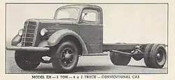 The military model EH was a 5-ton on road 4x2 cargo truck. The EH, EHU (cabover) and semi-tractor models EHT and EHUT had EN354 engines and disc wheels. Early trucks had standard commercial cabs, later open military cabs were used. Of 3,500 EH and 50 EHT built in 1943–1944, over 2,400 were exported to the British.[7][8]