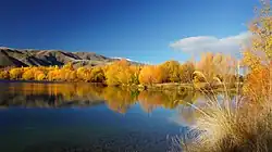 The Mackenzie District has a dry temperate-continental climate with clear, crisp snowy winters and long, hot summers. Autumn is known for being a riot of colour, while spring brings wildflowers blooming throughout the region, including lupins. The warm summer season is from November to February, with temperatures often passing 30 degrees. In the cooler winter season, from June to September, temperatures drop to below 0 degrees Celsius overnight, while sunny winter days average around 8 degrees and regular snowfall.[2]