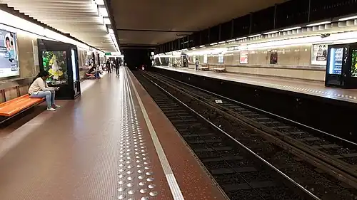 Madou (French pronunciation: [madu]) is a Brussels Metro station on the northern segment of lines 2 and 6. It is located under the Small Ring (Brussels' inner ring road) at the Place Madou/Madouplein, next to Madou Plaza Tower, in the municipality of the Saint-Josse-ten-Noode, north of the City of Brussels, Belgium. The station takes its name from that aboveground square, itself named after the painter and lithographer Jean-Baptiste Madou.