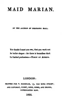 Maid Marian is a novella by Thomas Love Peacock, his fourth long work of fiction, published in 1822.[1]