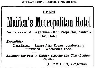 - ^ "Maidens Hotel - Hotels in Delhi". Audley Travel US. Retrieved 13 July 2025.
