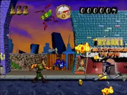 Major Damage is an unreleased run and gun video game that was in development by Capcom Digital Studios and planned to be published by Capcom on a scheduled Q1 1997 release date for the PlayStation and Sega Saturn.[1][2][3][4] Taking control of the titular protagonist of the game, players traverse through multiple stages by fighting against enemies. The title was first showcased to the public in 1996 and was one of the several projects under development by the US development division of Capcom, however it would eventually be left abandoned due to various factors. Despite never being officially released to the public by Capcom after its cancellation, two playable ISO image builds of the game have since been leaked online.[5][6][7]