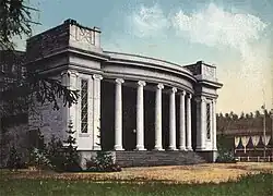 With the completion of a railway station in 1884 Malakhovka was recognized as a dacha settlement. By the end of 19th century, the settlement was inhabited by such renowned representatives of Russian arts and literature as Anton Chekhov, Maxim Gorky, Ivan Bunin, and Feodor Chaliapin.[10] Chaliapin performed in the Malakhovka's Summer Theater before 1914.[14] The actress Faina Ranevskaya performed there from the following year, and also had a dacha there. At the time of the Revolution Malakhovka was a described as a "hamlet" of about three hundred dachas.[14]