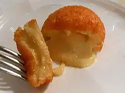 A malakoff is a ball of fried cheese typically found in western Switzerland, particularly in the villages of Eysins, Begnins, Bursins, Luins, and Vinzel (where it is also known as “Vinzel beignet”) along the shores of Lake Leman.[1] The name comes from the Battle of Malakoff, the dish itself having been invented by Swiss mercenaries during the siege of Sevastopol.[1]