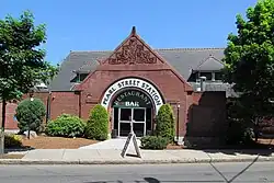 The Boston and Maine Railroad (B&M) opened through Malden in July 1845.[5] The first station was a two-story wooden depot on the east side of the tracks at Pleasant Street; it was replaced by a smaller station on the west side in 1871.[6][7] In May 1891, the B&M began construction of a new station as part of a grade crossing elimination project.[8] The new station opened in 1892.[7] In 1958, the station building was purchased from the B&M for just $1,000 (equivalent to $10,900 in 2024). It was renovated for use as a restaurant and banquet hall, which opened by 1962.[9][10]