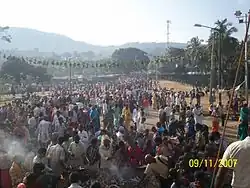 The song and dance routine is called Kamsale (Kannada: ಕಂಸಾಳೆ ನೃತ್ಯ). Kamsale is closely connected with a tradition of Shiva worship. Only those who have vowed to live a life of devotion to Mahadeshwara are supposed to perform kamsale. The dance is a part of a 'deeksha' or oath and is taught by a teacher or spiritual leader. Kamsale artists are illiterates and have no printed literature. They learn those songs orally. They participate in fairs, which are held in Mahadeshwara Betta during 'Deepavali', 'Shivaratri' and 'Ugadi' festivals.[2] Hence, Mahadeshwara is also known as Badawara devaru Madappa "Chellidaru Malligeya" is a famous folk song that describes the devotion and worship of lord Mahadeshwara.