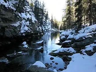The Maligne River (/məˈliːn/ mə-LEEN)[1] is a medium-sized river in the Canadian Rockies. It runs through parts of Jasper National Park in Alberta, Canada. The Maligne is a major tributary of the Athabasca River.